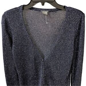 Ann Taylor holiday navy blue metallic threaded cardigan sweater women’s Small