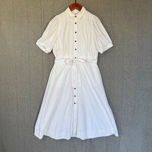 Ann Taylor ivory Linen Blend Short Puff Sleeve Button Front Midi Dress Size 16