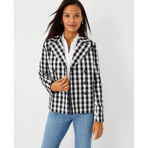 Excellent condition Ann Taylor black and white checkered jacket. Size small petite.