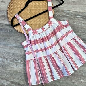 Ann Taylor loft red and white striped peplum sleeveless blouse
