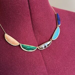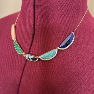 Ann Taylor loft watermelon stone rainbow statement necklace in silver