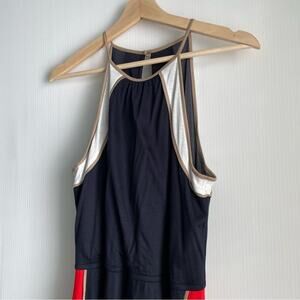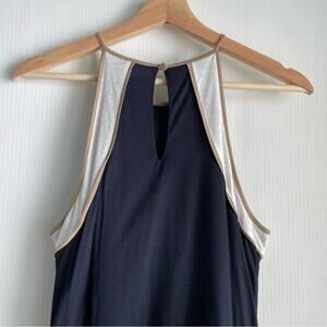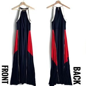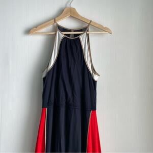Ann Taylor maxi dress red white navy and tan size small high neckline
