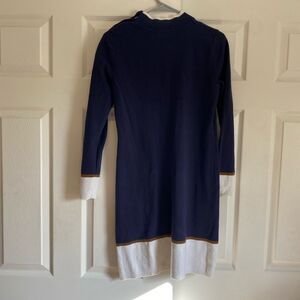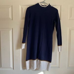 Ann Taylor medium petite Colorblock mock neck sweater dress blue white gold