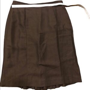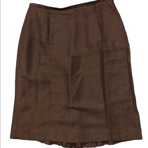 Womens linen blend, fully lined mocha straight skirt with back partial pleated hem. Hidden side zipper, fully lined. EUC