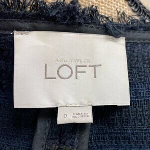 Like new Ann Taylor navy and black woven open front raw seams blazer. EUC, great shape, size 0, cotton blend, wide collar, see pictures for details.
