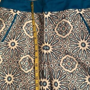 Ann Taylor petite blue white teal brown pattern skirt Greek Mediterranean Europe