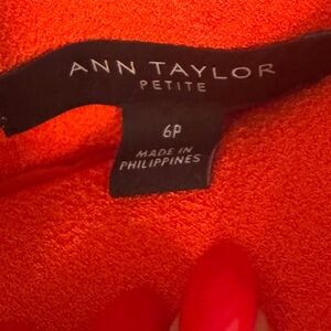 Ann Taylor pleated orange midi skirt. Size 6 Petite. In good pre owned condition with some signs of wear including a small stain as pictured. The stain is hidden pretty well behind a pleat.