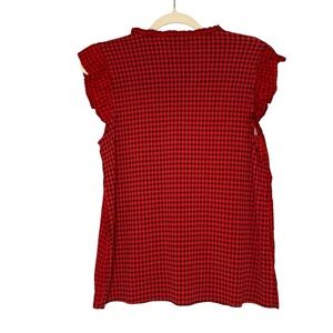 Ann Taylor red & burgundy houndstooth sleeveless ruffle button up blouse. Size S