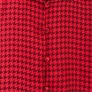 Ann Taylor red and burgundy houndstooth ruffle cap sleeve button up blouse. The buttons are covered. Ruffle pleated trim collar. Perfect for the office of holiday! Tags: professional, business wear, date night, holiday, Fall, contemporary, stylish, winter. Size S