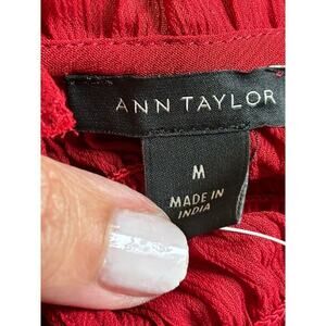 Ann Taylor red smocked yoke blouse, NWT, medium, office, career, sheer, bright