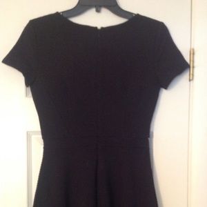 Ann Taylor ribbed dress with stretch. Wonderful detail and fit. Split neck, short sleeves, inset waistband. Hidden back zipper with hook and eye closure. Falls about 24 inches from natural waist.