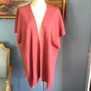 Ann Taylor, salmon/maroon color. Open sweater vest, poncho, kimono, cover up, soft, comfy, cozy, warm, fall, winter.