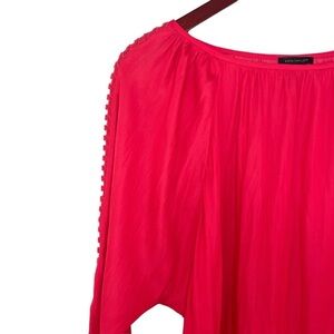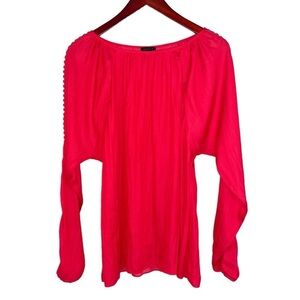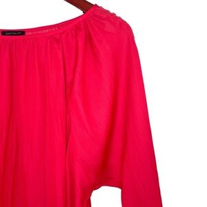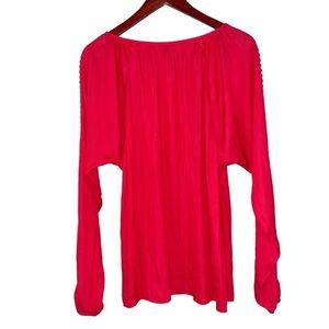 Ann Taylor satin blouse crochet latter long sleeve coral red silky large