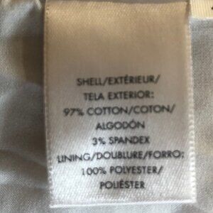 Material: 97% cotton/ 3% spandex, lining 100% polyester. Machine washable.
