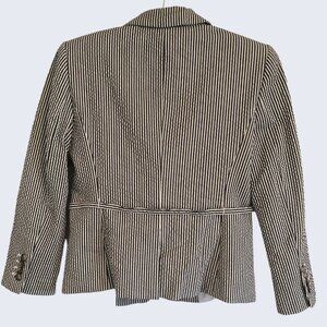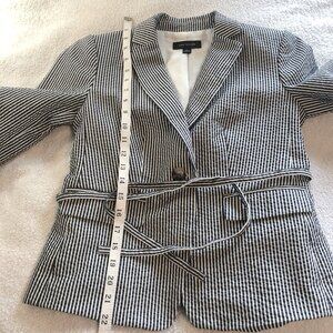 Ann Taylor seersucker side tie blazer/ white and navy stripe