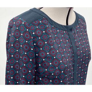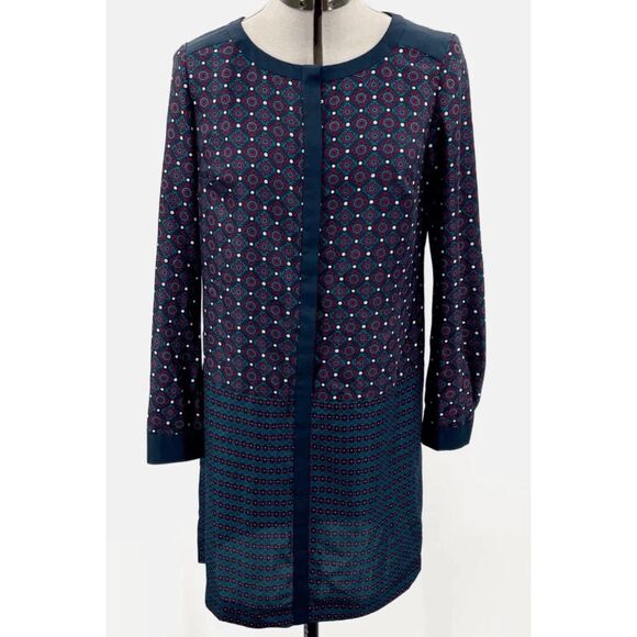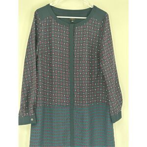 Ann Taylor size 14 navy blue print long sleeve shift dress