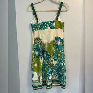 Ann Taylor, size 2, women’s cream blue green floral lined mini dress EUC