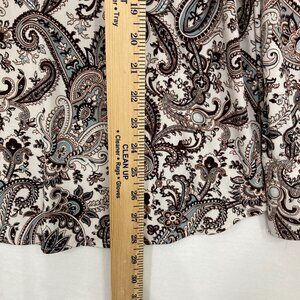 Ann Taylor size XL Brown White Paisley Stretch Knit Long Sleeve Pullover Top