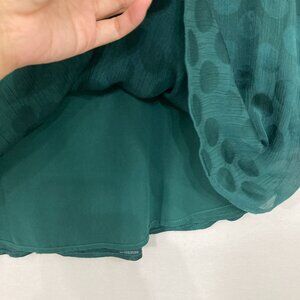 Ann Taylor size XL Green Round Neck Polka Dot Short Sleeve Blouse Office Career