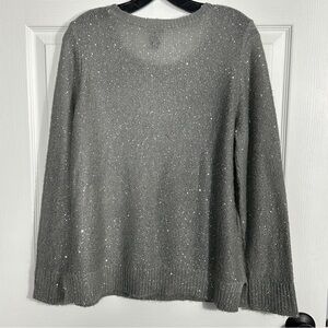 Ann Taylor Factory size XL gray sparkly sweater, with silver glittery highlights. Loose weave, 61% polyester/25% acrylic/11% nylon/3% wool.
