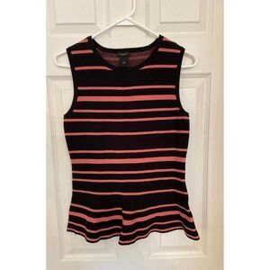 Stretchy sleeveless top from Ann Taylor.. Black with pink stripes and small peplum-type waist.