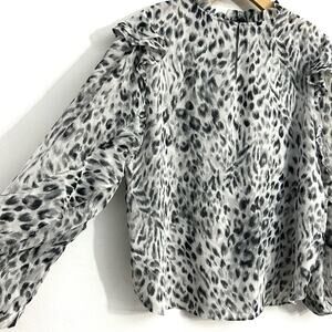 Ann Taylor snow leopard ruffled sleeve mock neck top white black casual size XL