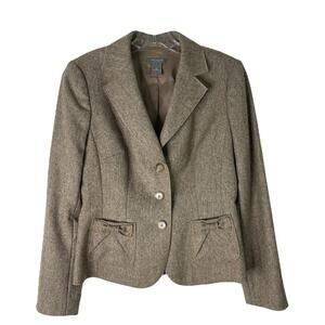 Ann Taylor tan wool bow button preppy office blazer 8P
