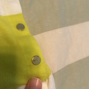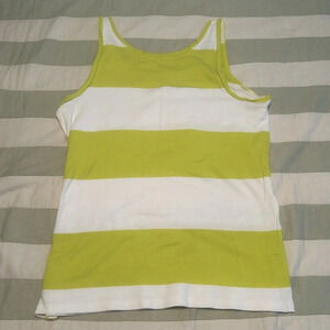 Ann Taylor, tank top, blue and green block striped with gold buttons size M