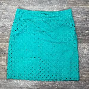 Ann Taylor turquoise green eyelet straight pencil skirt size 2 B171