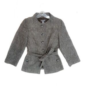 Ann Taylor tweed 3/4 sleeve button down belted jacket/ blazer ❤️ size 0, fabric content tag cutout so unsure of content. Very good shape! Shimmer/ metallic woven in, hard to see in photos can see best in zoomed in fabric photo. Huge discounts on bundles! Add any items you’re interested in to bundle and I’ll send a private offer! Reasonable offers always accepted! ❤️