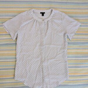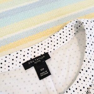 ⭐ Ann Taylor white with black polka dots mixed media blouse XSP
