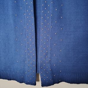 Ann Taylor Factory women's knit cardigan, silver studs, size S oversized, blue, open front, 60% cotton, 40% acrylic, stretch, no pilling, clean garment in good condition.