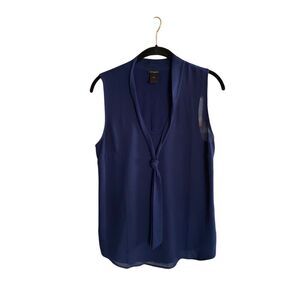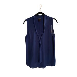 Ann Taylor women’s navy blue matte jersey necktie Blouse size small