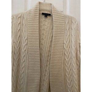 Ann Taylor white chunky knit braided alpaca wool blend open tunic cardigan sz M