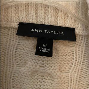 Ann Taylor wool alpaca white chunky braided cardigan sweater sz M