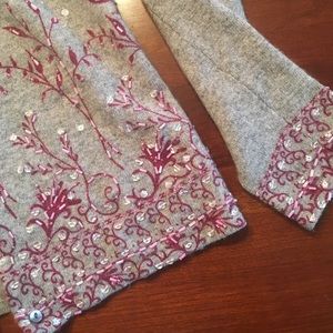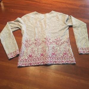 Women's XS Ann Taylor button grey sweater with magenta floral designs. It's is excellent used condition.