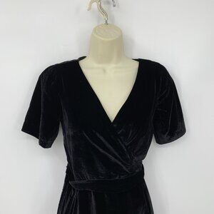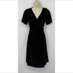Ann Taylor wrap dress black velvet short sleeve midi new 00 PETITE 00P