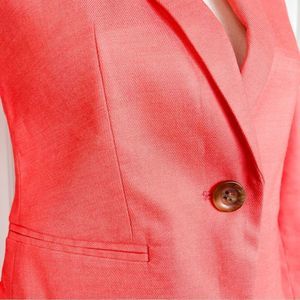 Ann Taylor 00P NWT Petite Linen & Shell Corral Orange Blazer 1 Button & Pockets