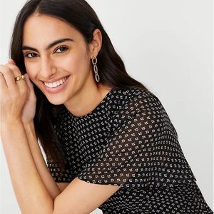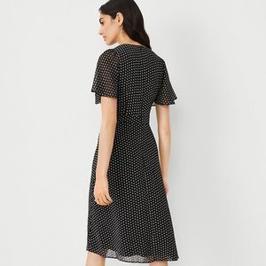 Ann Taylor 00P Petite Black Floral Flutter Sleeve A-Line Flare Dress