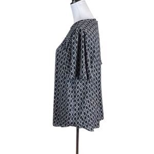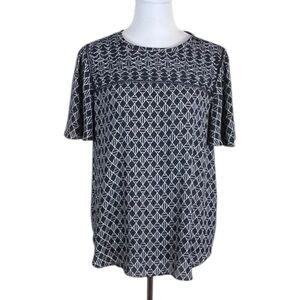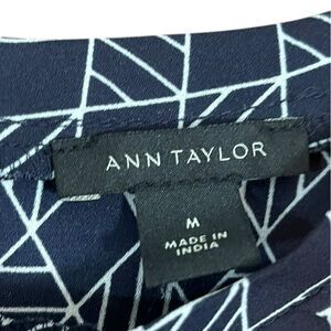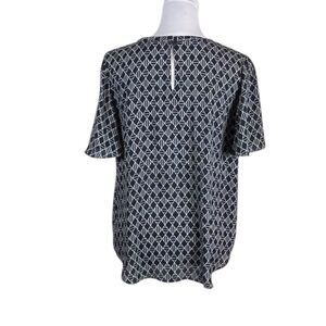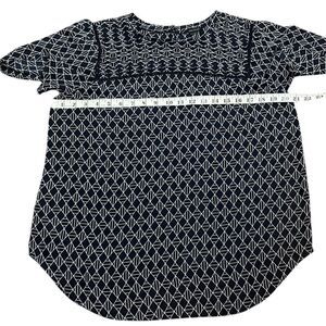 Ann Taylor Dark Navy and White Geometric Short Sleeve Top, Size M