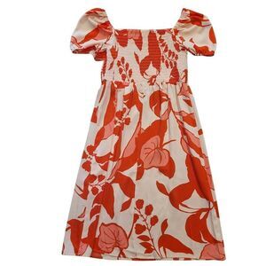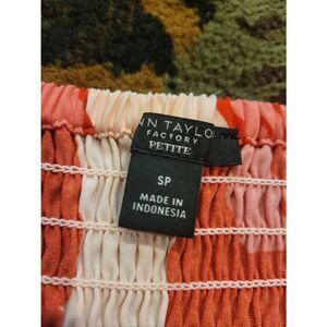 Ann Taylor Dress Women's Small Petite Pink Red Floral Smocked Jersey Midi