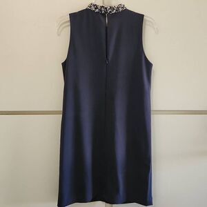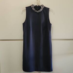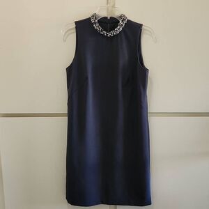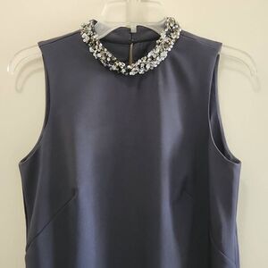 Ann Taylor Grey Slvls Sheath Dress w/ Beaded Mock Collar, sz 6, Pre-owned