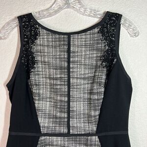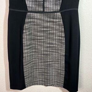 Ann Taylor LOFT Black Tweed Stripe Floral Sleeveless Sheath Dress Women's 6P