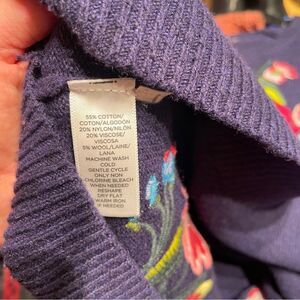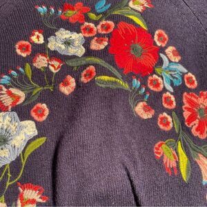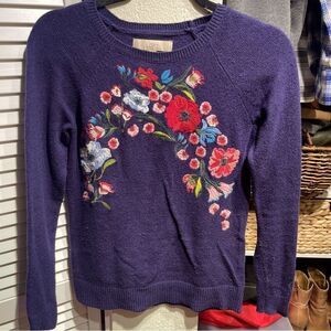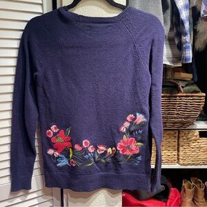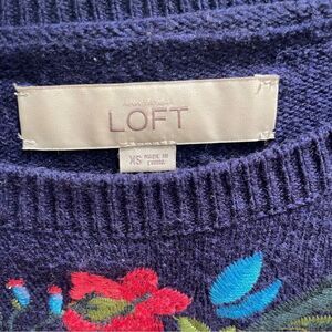 Ann Taylor LOFT navy blue sweater with embroidered flowers. Good condition, minimal wear. Size XS