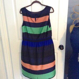 Ann Taylor/LOFT "Large" lined dress; Casual Sundress, Beach Vibes, Girls Vacation Time. Wide, color block Stripes, A-line with Elastic waist. Shoulders: 15", Pit-pit: 21", Length from Waist: 22", Waist: 18". No visible signs of wear; Gently pre-loved.