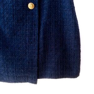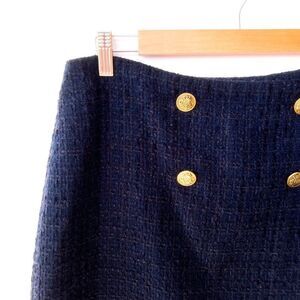 Ann Taylor LOFT Navy Blue Tweed Gold Crest Buttons Asymmetrical Flap Skirt 12P
