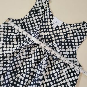 With a flattering V-neckline, this fluid polyester tank by Ann Taylor LOFT is a modern-minimalist must with a touch of chic. Pullover styling, the front features decorative tie front and the top is lined. It's a perfect layering piece for the office or a classy look on its own with shorts or any choice of pants. NWOT