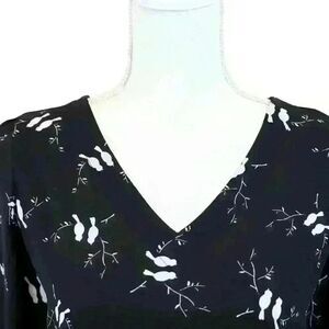 Ann Taylor LOFT Black Lovebirds Blouse V Neck Long Sleeve Sheer Tie Back Size XS