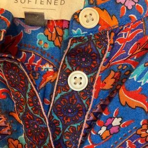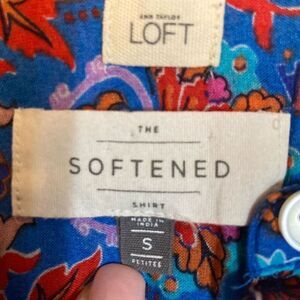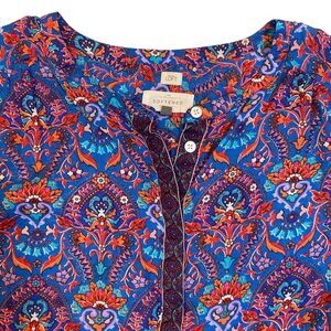 Ann Taylor Loft Blue Red Floral Paisley 3/4 Sleeve Blouse Women Size Small