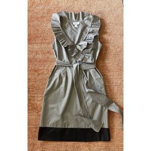 Ann Taylor Loft Size 0 Gray Dress Ruffled Sleeveless Belted Two Pockets